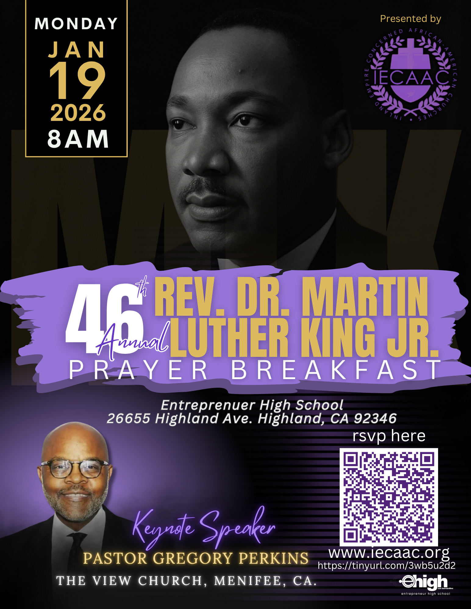 Save the date for the 45th Annual Martin Luther King Jr. Prayer Breakfast, hosted by Inland Empire African American Churches (IECAAC).